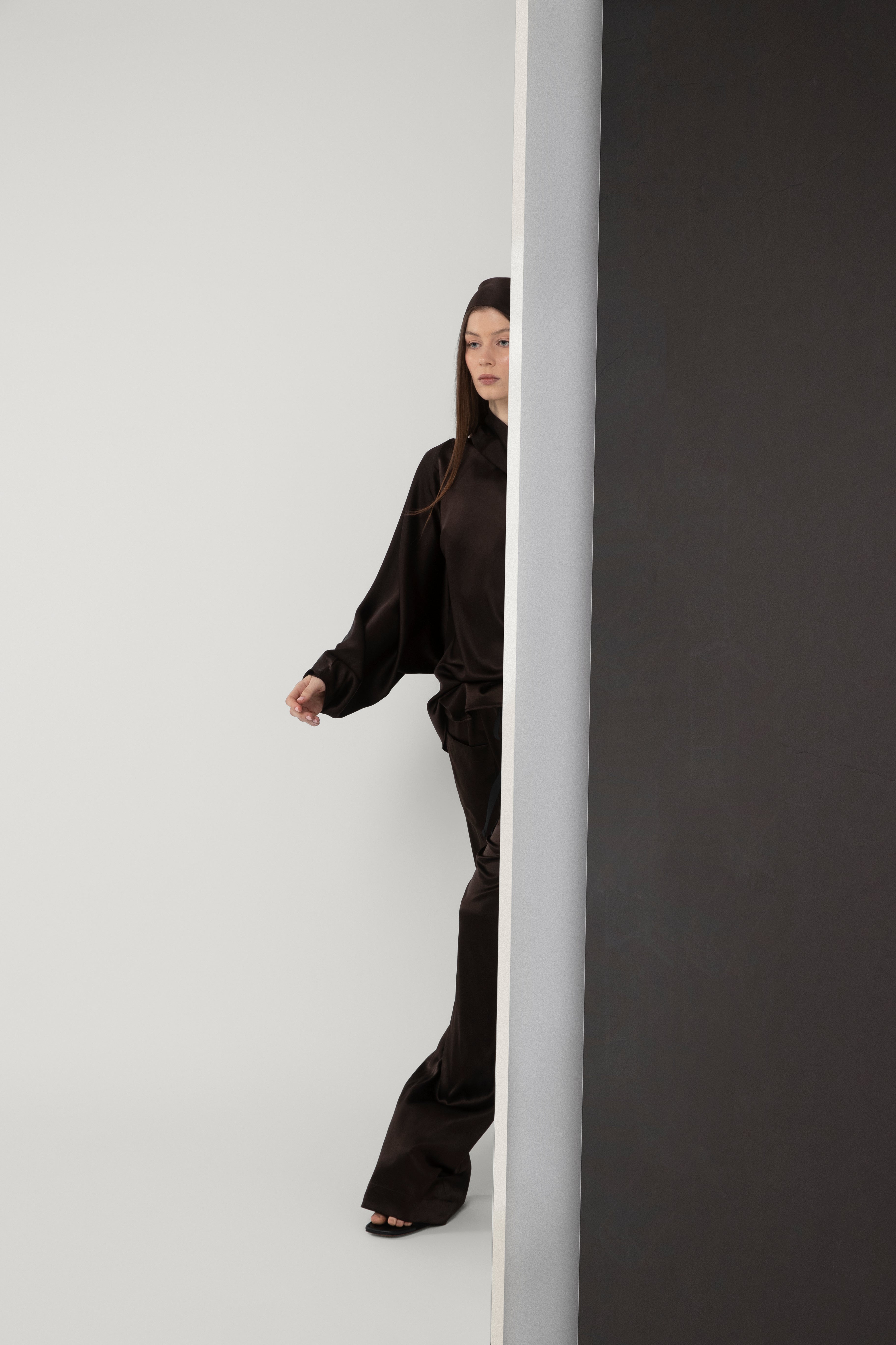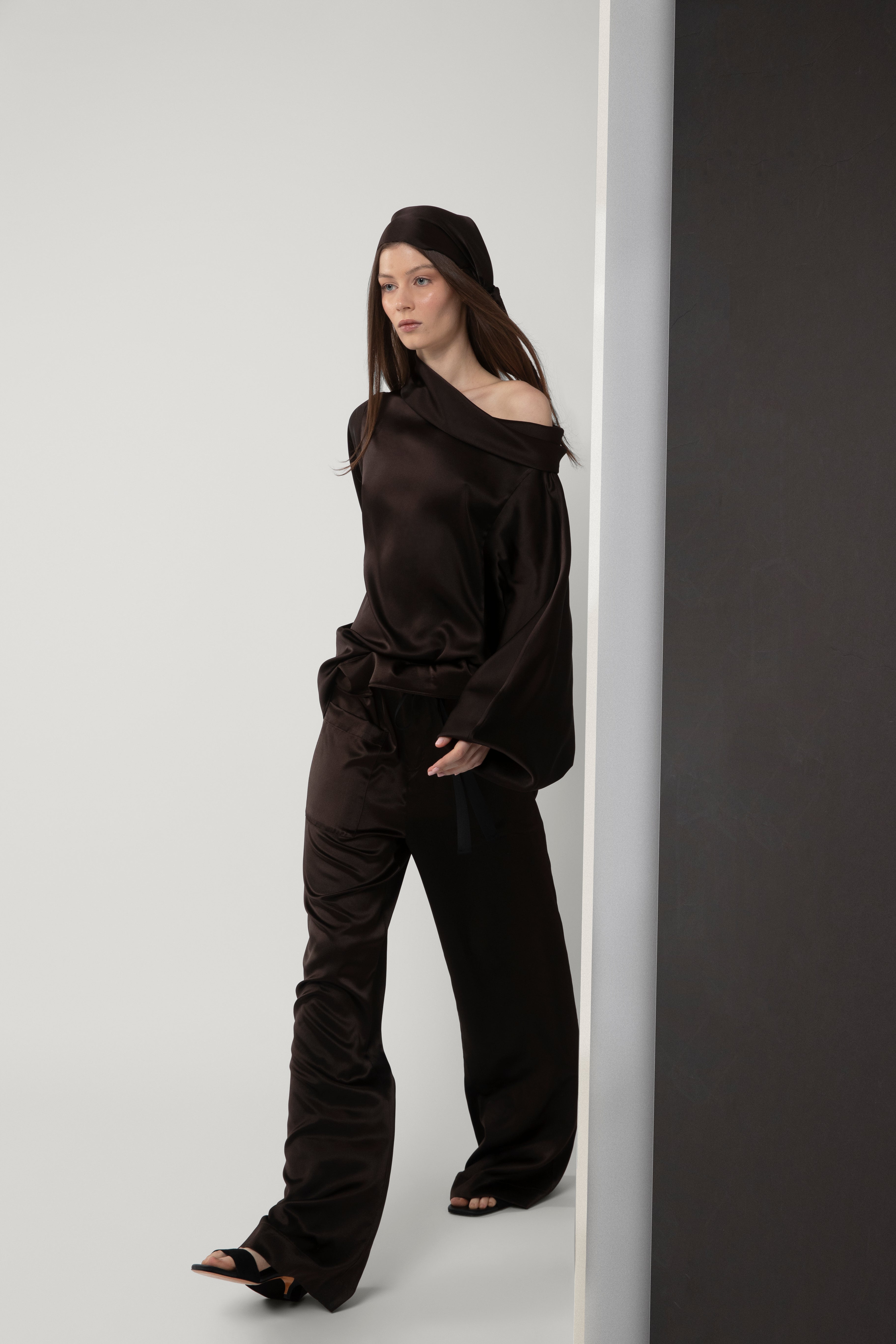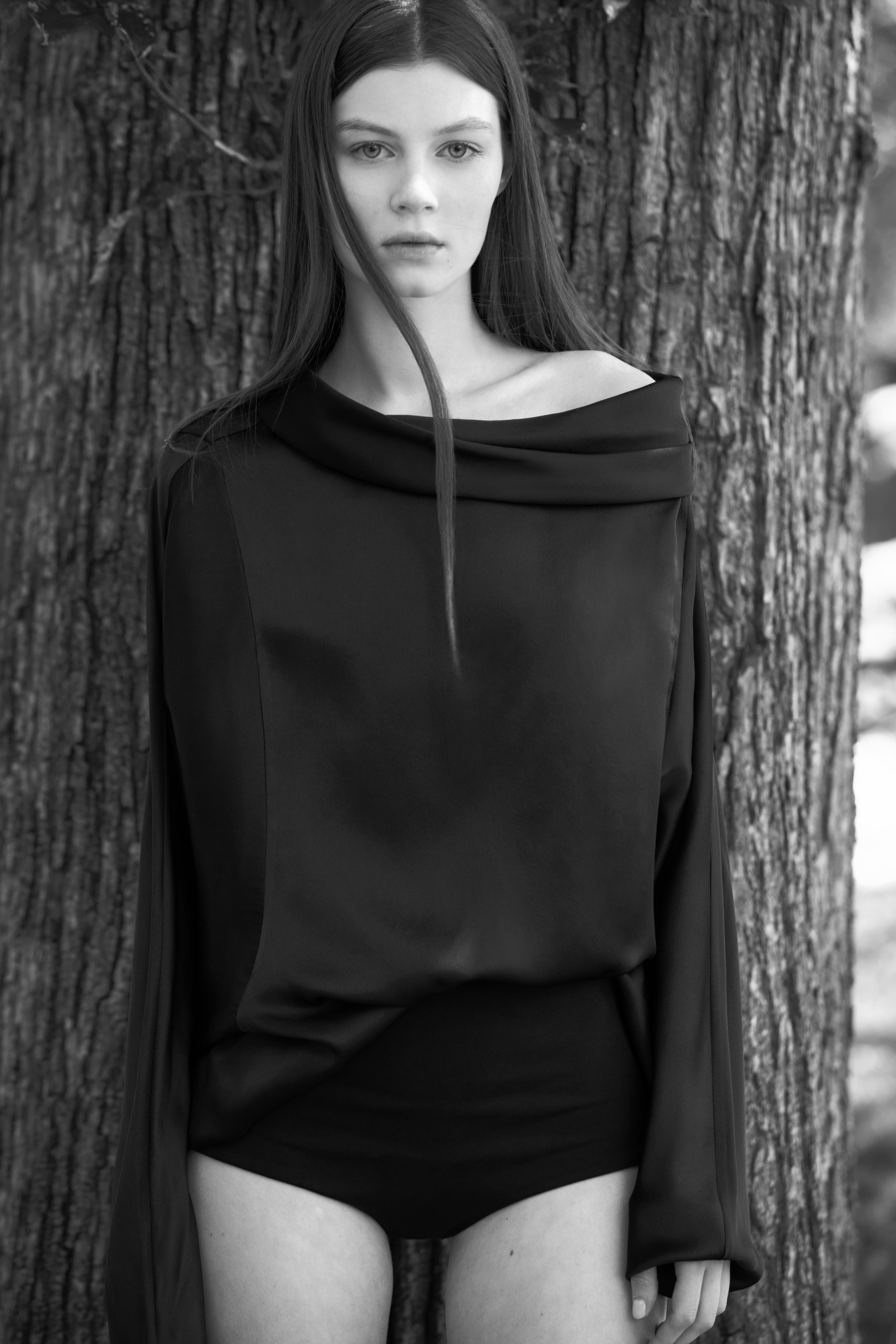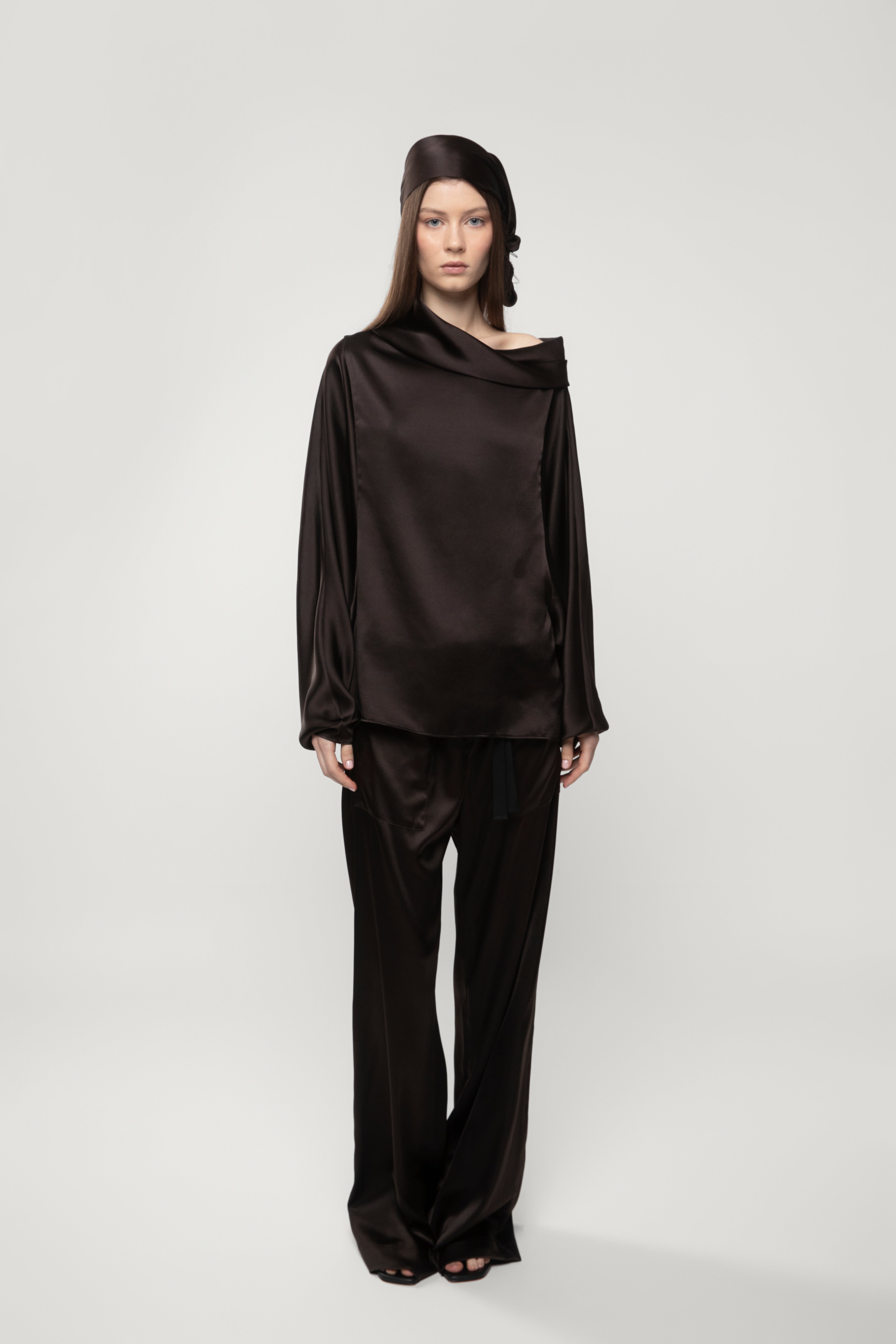 Loose fit cowl neck top with batwing sleeves.